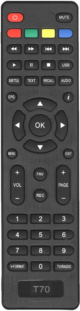 Пульт Huayu T70 (V-FORMAT) для DVB-T2 ресивера