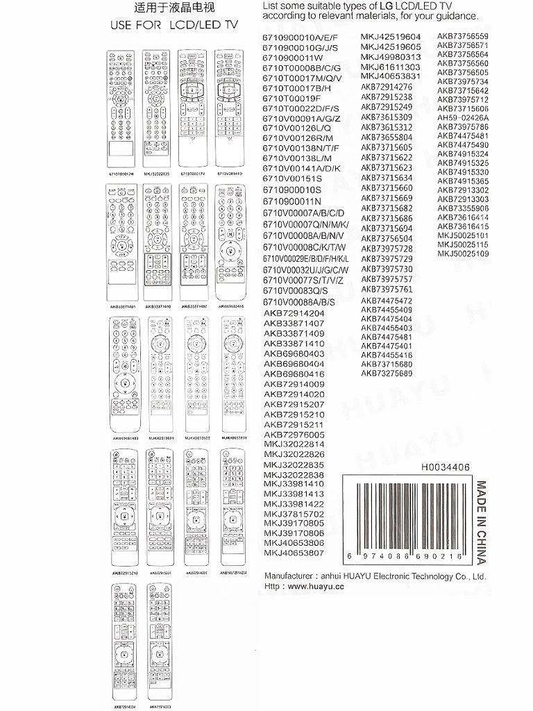Универсальный пульт Huayu для LG RM-L915+ c функцией 3D