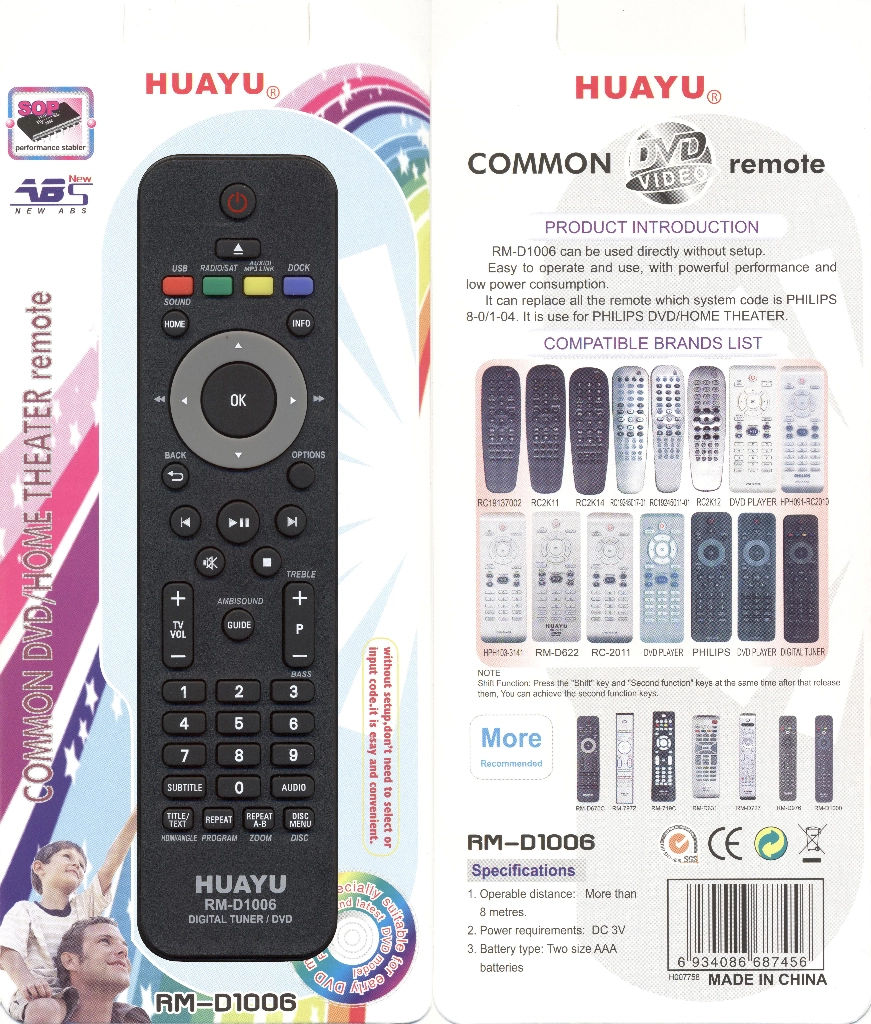 Универсальный пульт Huayu для Philips RM-D1006